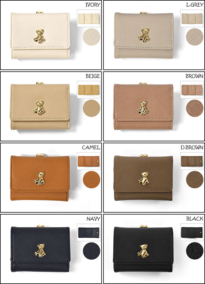 フェイクレザー くま プレート がま口 三つ折り ミニ財布 /ミニウォレット 三つ折り財布 折財布 財布 ミニ レディース 女性 女 小さい 小さめ 大人 かわいい 可愛い おしゃれ オシャレ 無地 シンプル コンパクト 合成皮革 合皮 レザー PU 動物 アニマル 熊 テディベア/